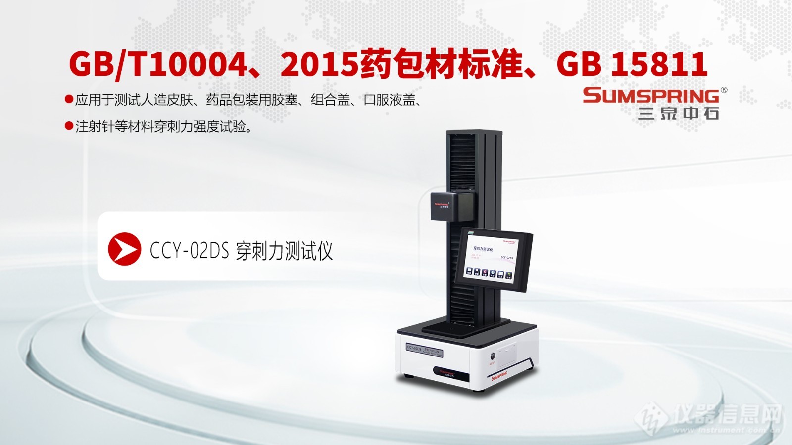 的研发与制造。其CCY-02DS抗生素瓶橡胶塞穿刺强度检测仪具有高精度传感系统、无极调速等功能,已广泛应用于药检机构、制药厂及包装材料生产企业。凭借自主研发实力与多项专利技术,三泉中石为药包材质量控制提供了可靠的技术支持与全面解决方案。